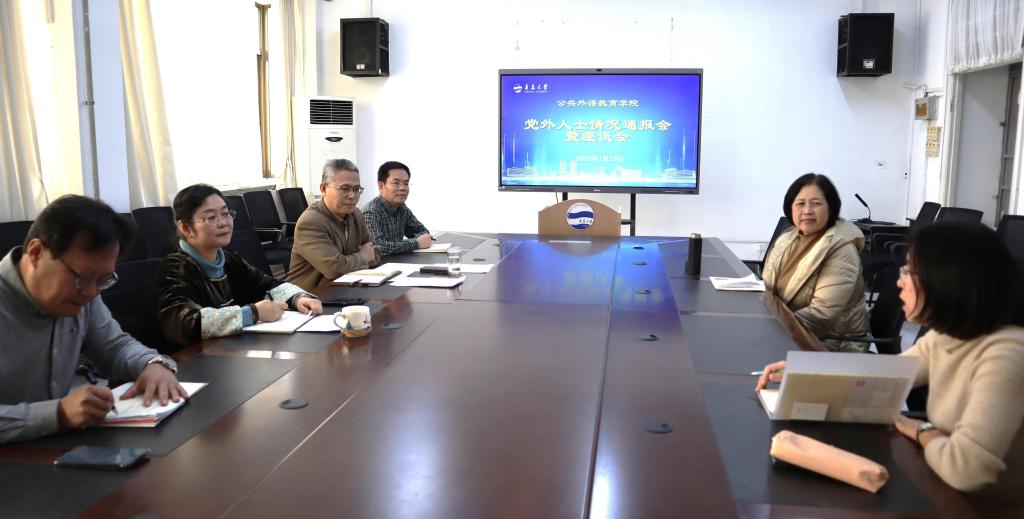 在睿思楼202会议室召开党外人士情况通报会暨座谈会。学院党委书记甄淑华、院长国林祥、副院长陈安榕、佴云国及民主党派、无党派人士代表王海峻、徐淑丽等参加会议。