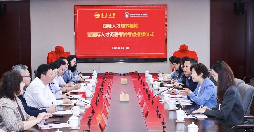 陈涛副校长、王悦副总监共同为中国外语测评中心国际人才培养基地揭牌。