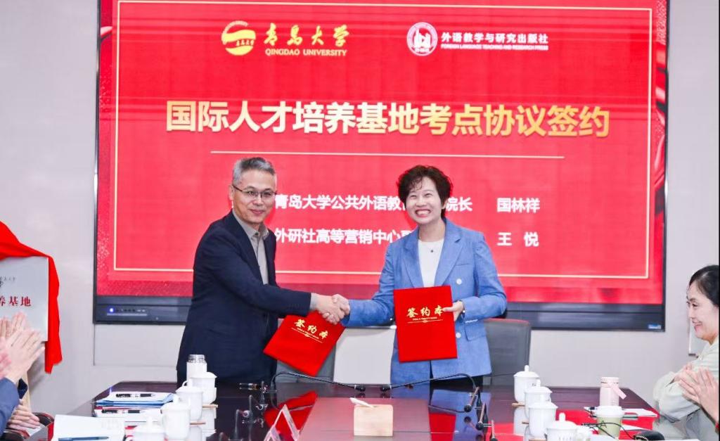 国林祥院长、王悦副总监分别代表双方签署《外研社和青岛大学合作协议》《青岛大学与外研社共建国际人才培养基地的协议》。