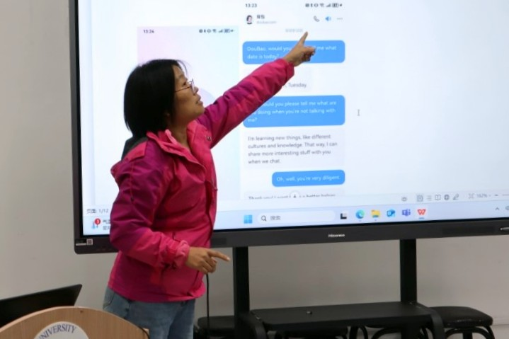 秦丹雪老师以“巧用AI工具,精通学术转换”为题,分享了在硕士研究生学术英语课程中,如何借助DeepSeek、Kimi等AI工具帮助学生深入理解学术英语的转述技巧,有效提升学生的转述能力与批判性思维。