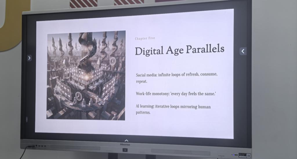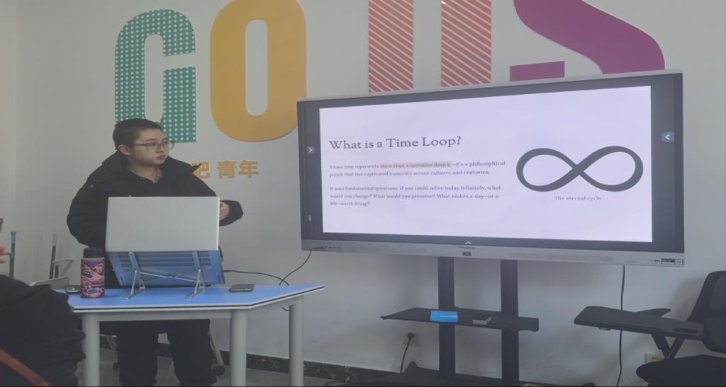 在主题分享环节,主持人带领大家深挖时间循环的文化与心理意义。大家热烈探讨了《Replay》《水果篮子》等文学作品,《明日边缘》《棕榈泉》《俄罗斯娃娃》等影视佳作,以及《Outer Wilds》《死亡循环》等游戏中的时间循环设定,一致认为这类叙事早已成为我们探索道德成长、技能提升与自我发现的重要载体。