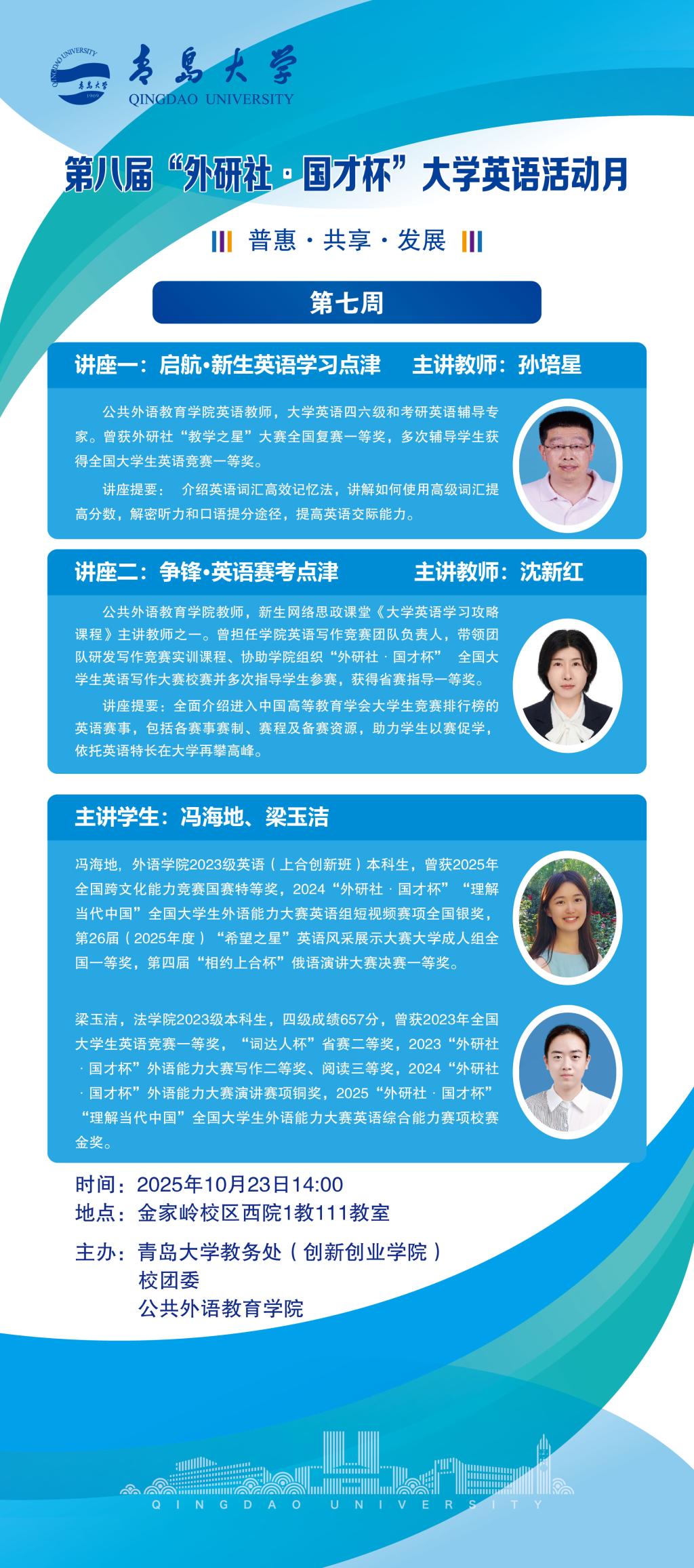 下一篇:关于公布青岛大学2025“外研社·国才杯”“理解当代中国”全国大学生外语能力大赛英语演讲赛项校赛(非英语专业组)决赛获奖名单的通知