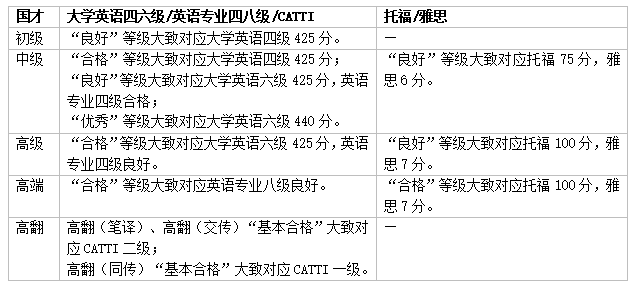国才考试与国内外英语考试的对标